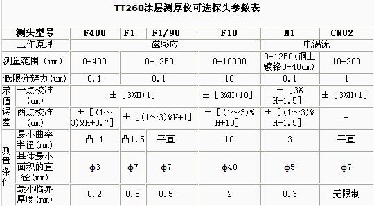 時(shí)代TT260FN涂層測(cè)厚儀的探頭測(cè)量技術(shù)參數(shù):