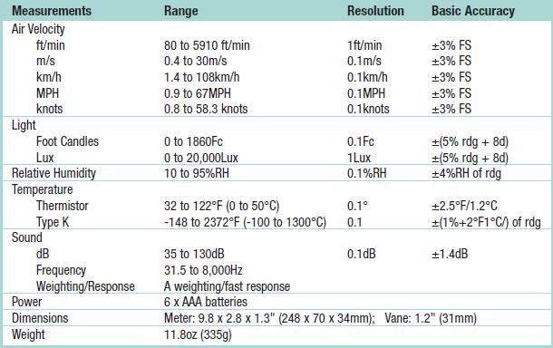 美國Extech EN300風速/溫濕度/照度/噪音多功能測量儀的技術參數: