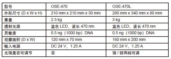 OSE-470/470L切膠儀/藍光透射儀此儀器還可應用于其它激發波長在470-520 nm 的熒光觀測,如GFP標記的蛋白、小型動植物。