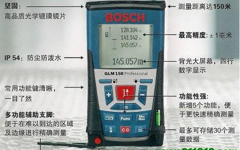 GLM 150激光測(cè)距儀范圍達(dá)150m,高精度,GLM 150手持式激光測(cè)距儀具測(cè)量距離、長(zhǎng)度、高度、計(jì)算面積、體積等功能,