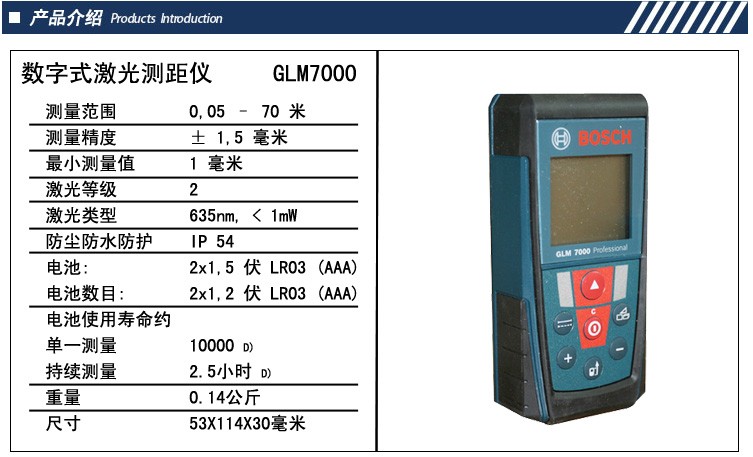 博世 GLM7000手持式激光測距儀產品特點: