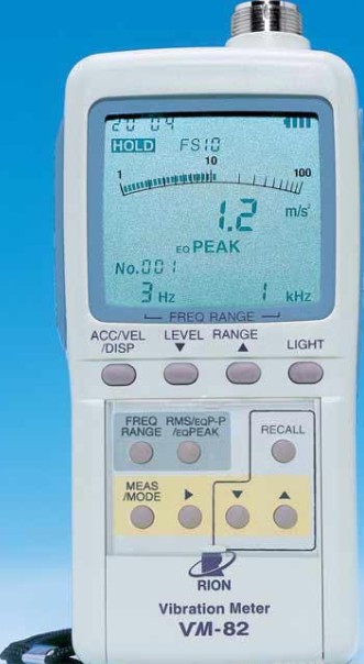 日本理音(RION)公司生產的VM-82便攜式數字測振儀重320克,是VM-63測振表的改進型,使用分離式振動傳感器,可對微小振動及超強振動進行測量