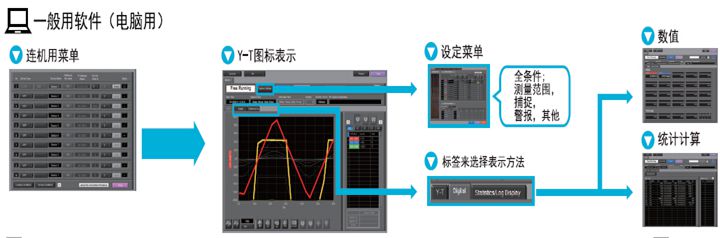 通用的應(yīng)用軟件帶顯示YT圖,波形及數(shù)值的能力,為新行業(yè)用戶定制的軟件提供該行業(yè)使用的各類(lèi)指標(biāo)。