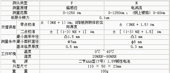 北京時代TIME2510便攜式涂層測厚儀的技術參數