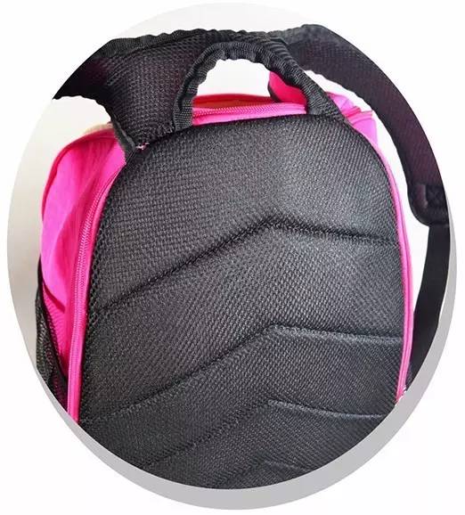 整個背部墊有減沖棉,貼合人體設計,背部貼合三文治網布更透氣