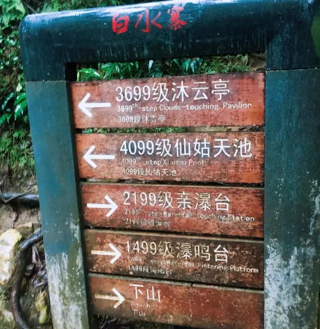 景點指示牌。說實在走到這里挺累的,但是森榮的人豈會在此折戟沉沙,吾等將苦困化為舟船,以盼望一覽仙境當作劃槳,渡過這漫長又濕滑的臺階長河!
