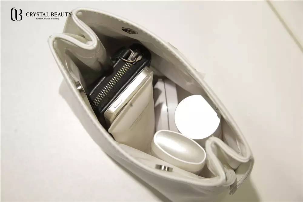 看著嬌小的包包,其實有容乃大。里面不僅可以放置整一套CB護膚產品,也可以作為獨立的包包使用,放置錢包手機等等。如果你覺得不夠,還可以打開兩側的金屬扣,空間立刻就來啦。