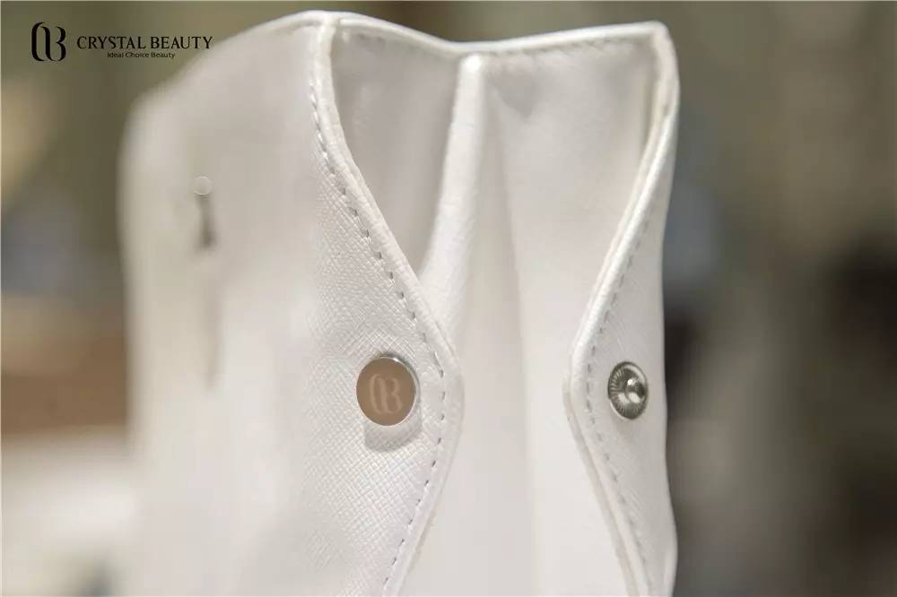 CB愛斯貝綺化妝包,沒有華麗的妝飾,純白的外觀搭配了4個銀色金屬扣和一個銀色CB LOGO,簡約大氣,又如美麗般一塵不染。